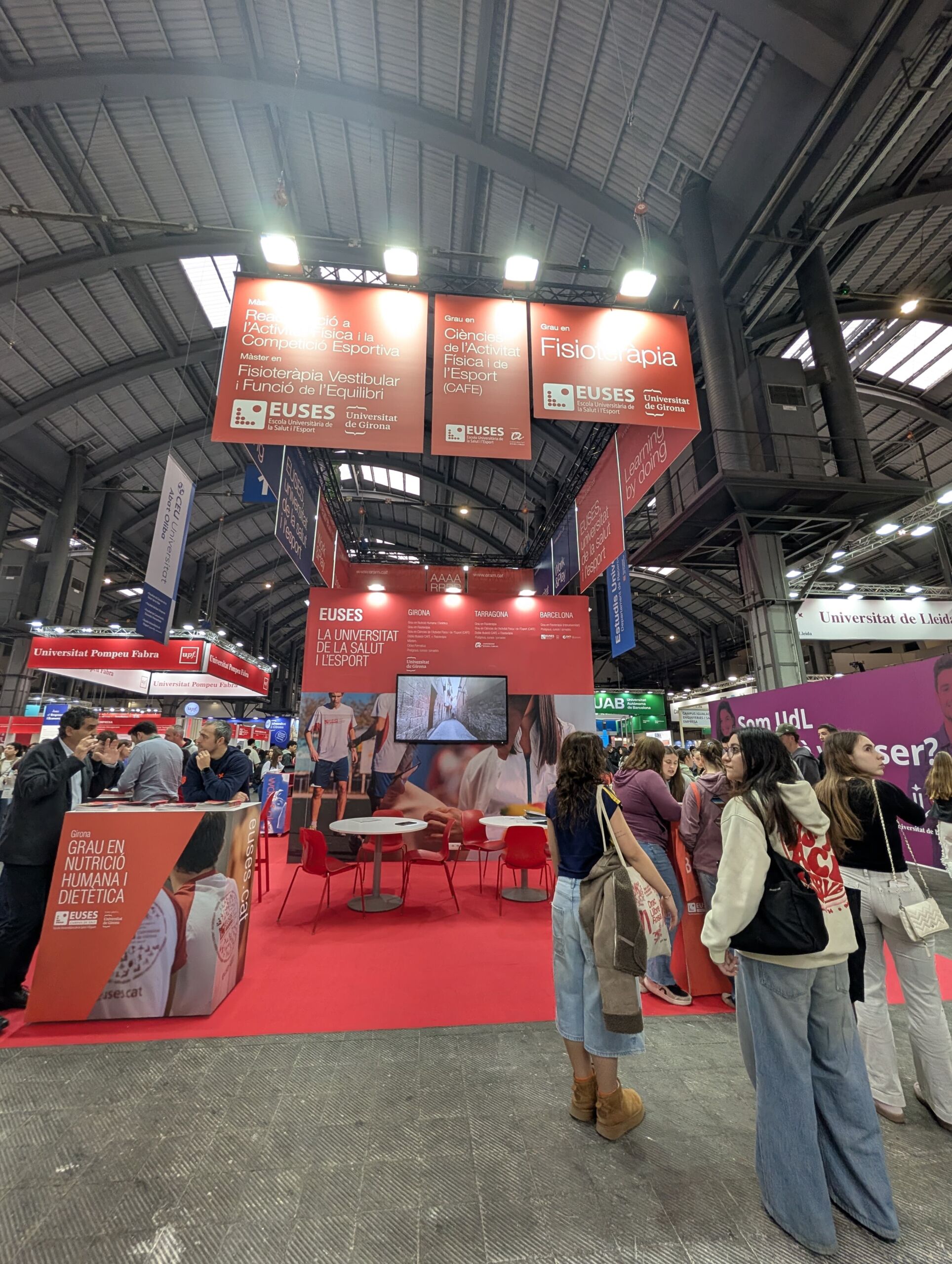 EUSES se encuentra ubicado en el estand 419 (pabellón 1, nivel 0, calle D). Allí los estudiantes podran encontrar toda la oferta universitària de los grados en Ciencias de la Actividad Física y el Deporte (Campus de Salt y de Terres de l’Ebre) y en Fisioterapia (Campus de Salt, Terres de l’Ebre y Bellvitge), dos formaciones especializadas y de calidad que pueden rubricarse posteriormente con dos másteres. También existe la opción de la Doble Titulación: CAFyD + Fisioterapia (Campus de Salt i de Terres de l’Ebre). Hace dos años, desde el curso 2024/2025, se sumó a la oferta académica en el campus de Salt el Grado en Nutrición Humana y Dietética.