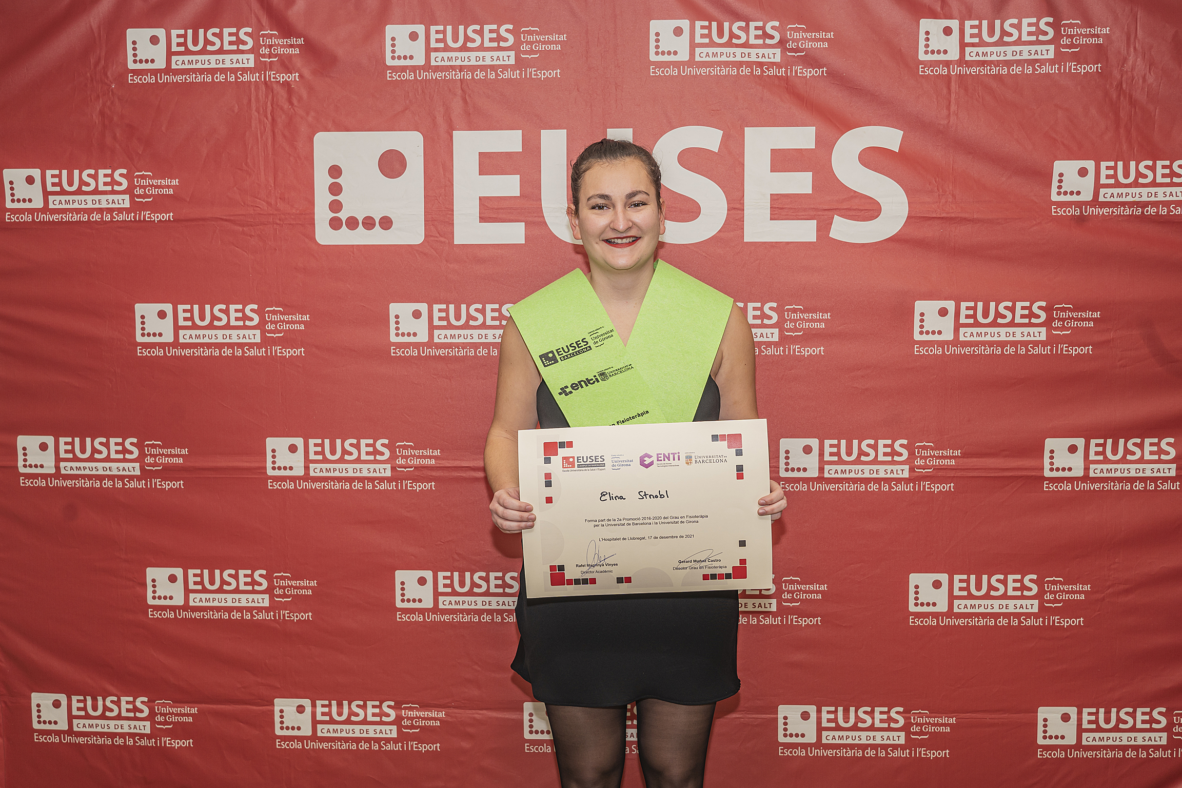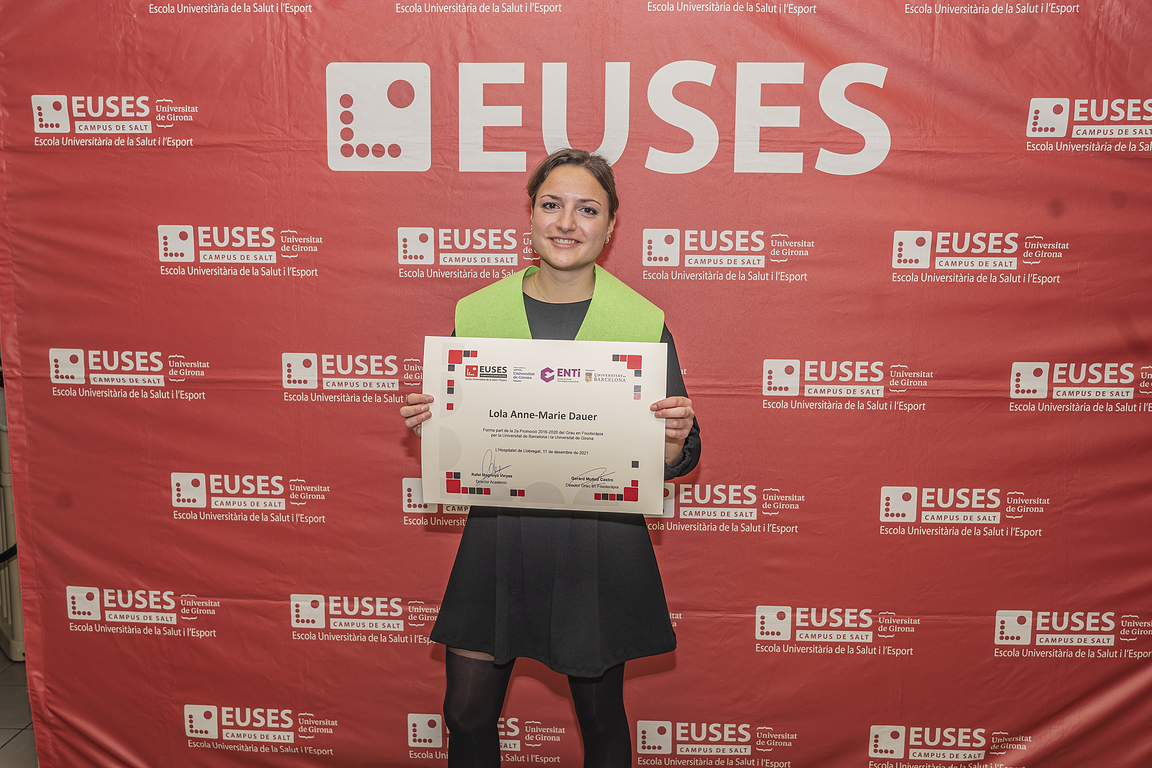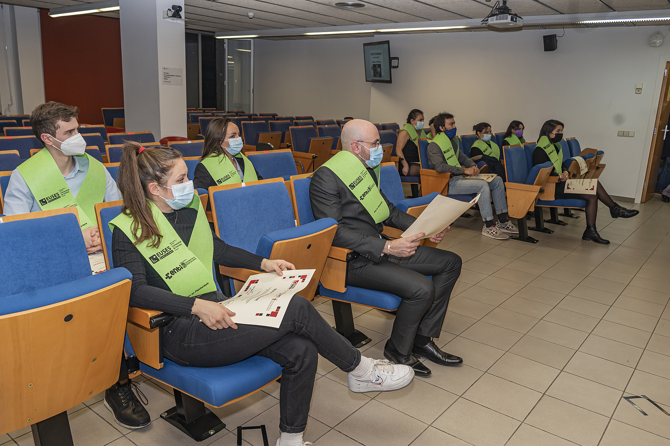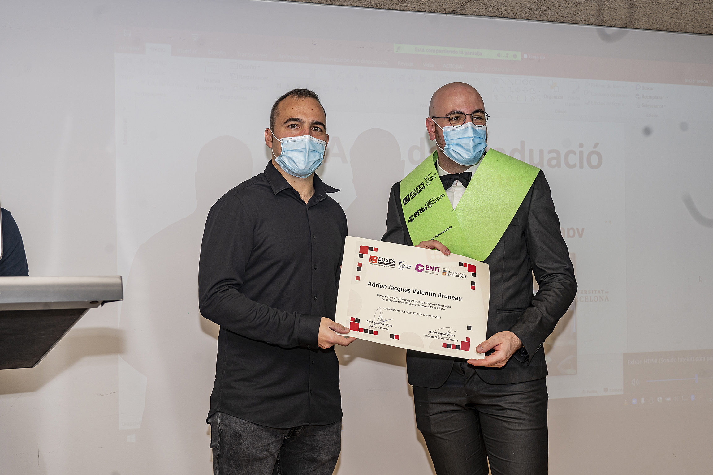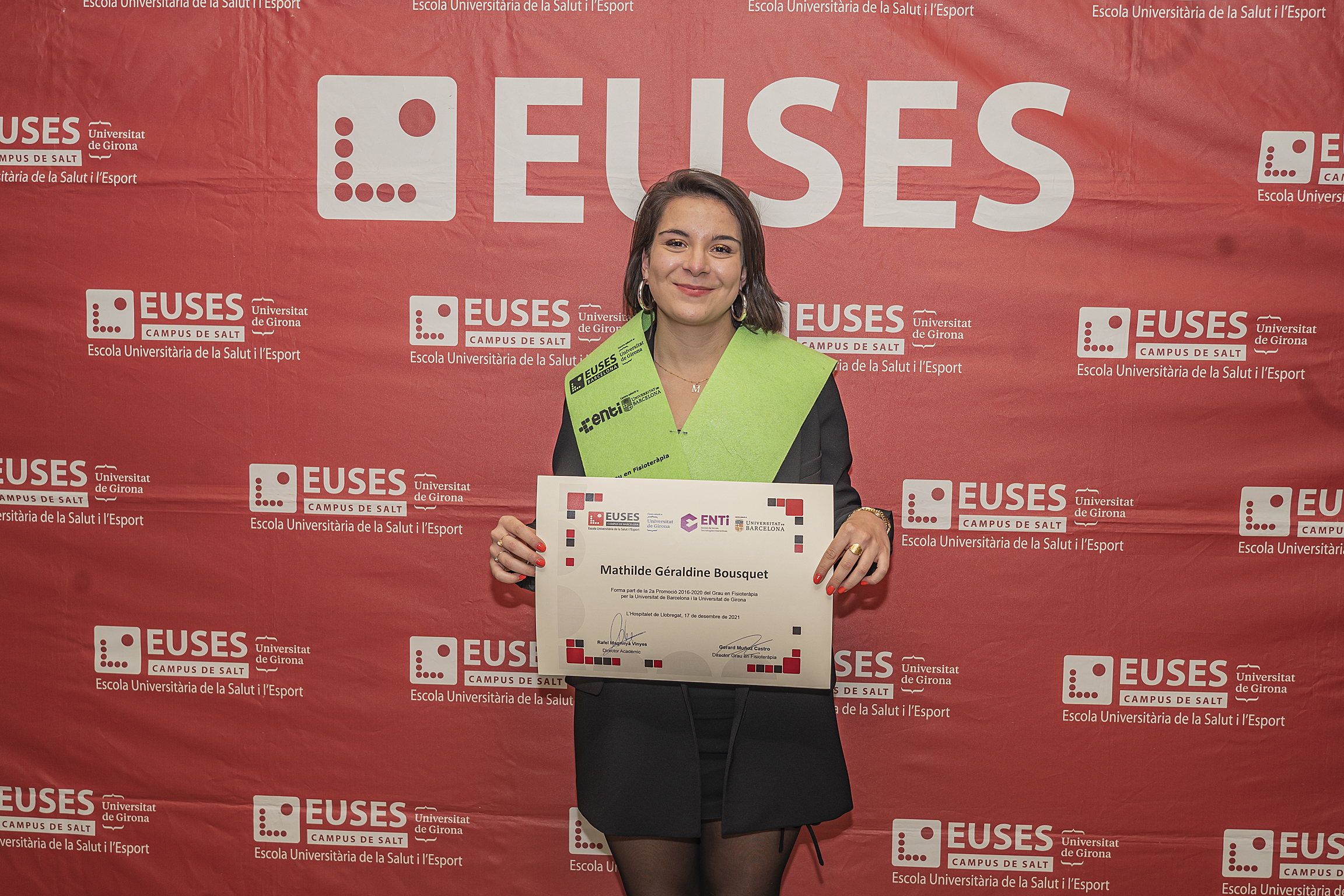 Le dernier vendredi 17 décembre, la cérémonie de remise des diplômes de kinésithérapie (diplôme de l’Université de Gérone et de l’Université de Barcelone) de la promotion 2016/2020, qui avait dû être reportée en raison des restrictions imposées par le Covid-19, s’est tenue dans l’auditorium du Campus de la Santé de Bellvitge. La cérémonie a permis aux diplômés qui ont pu être présents de recevoir leur diplôme en personne après avoir finalisé, il y a deux ans, leur cursus académique au campus de Bellvitge.