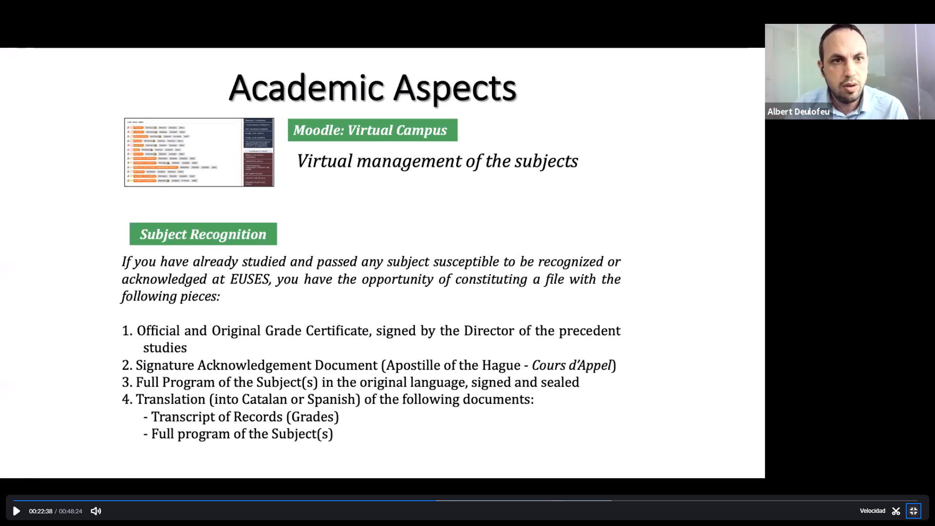 Les personnes inscrites à la Journée Portes Ouvertes ont également pu faire une visite virtuelle des installations grâce à une vidéo qui fait un tour complet du Campus et ont été informées, grâce à l’intervention du représentant du secrétariat académique, Albert Deulofeu, d’aspects plus administratifs et logistiques tels que l’inscription, les délais d’inscription, les prix… Ils ont également pu écouter l’expérience d’un ancien étudiant, Alejandro Revilla. A la fin des différentes présentations, les personnes intéressées ont pu poser des questions et éclaircir tous leurs doutes.