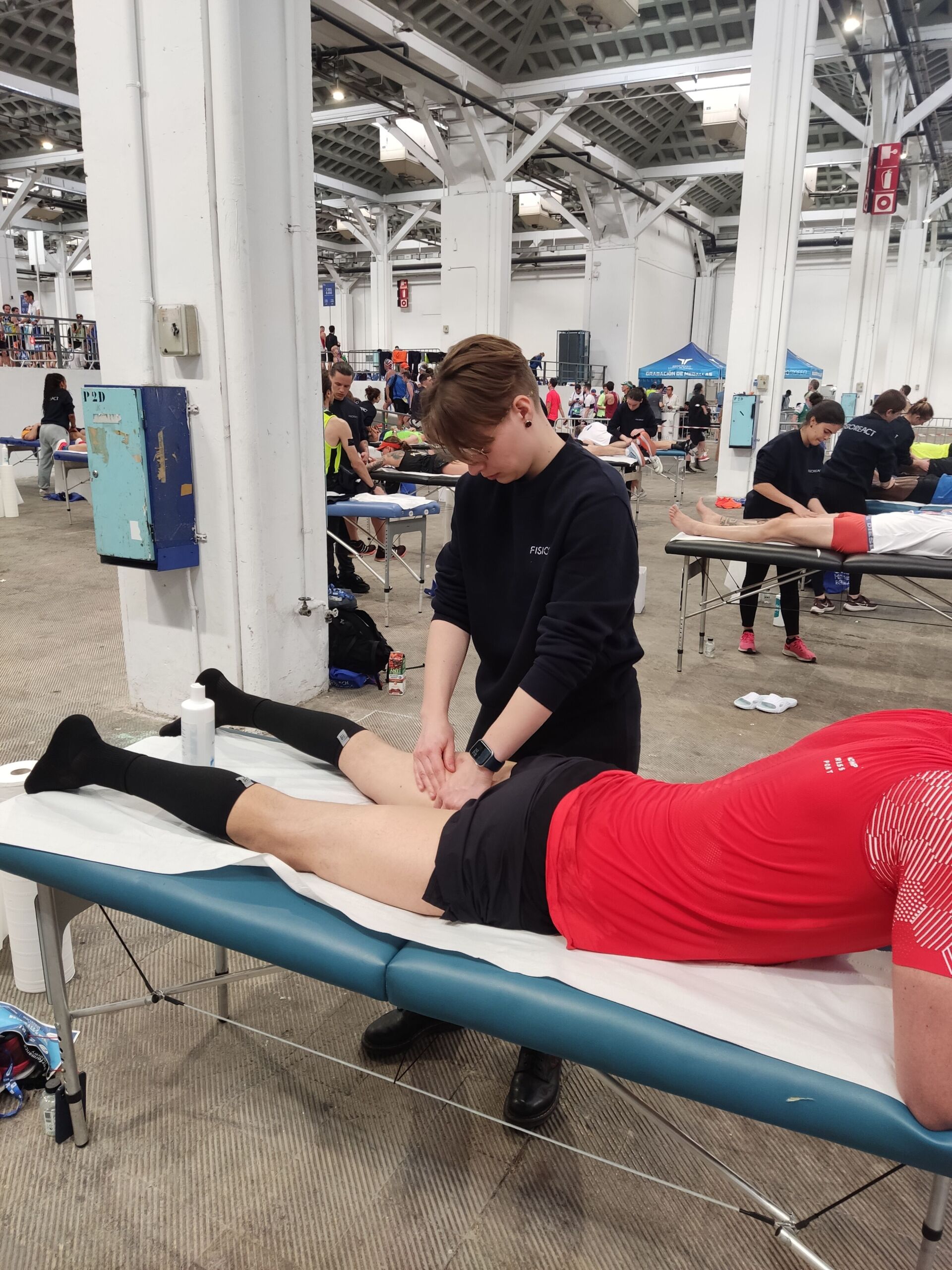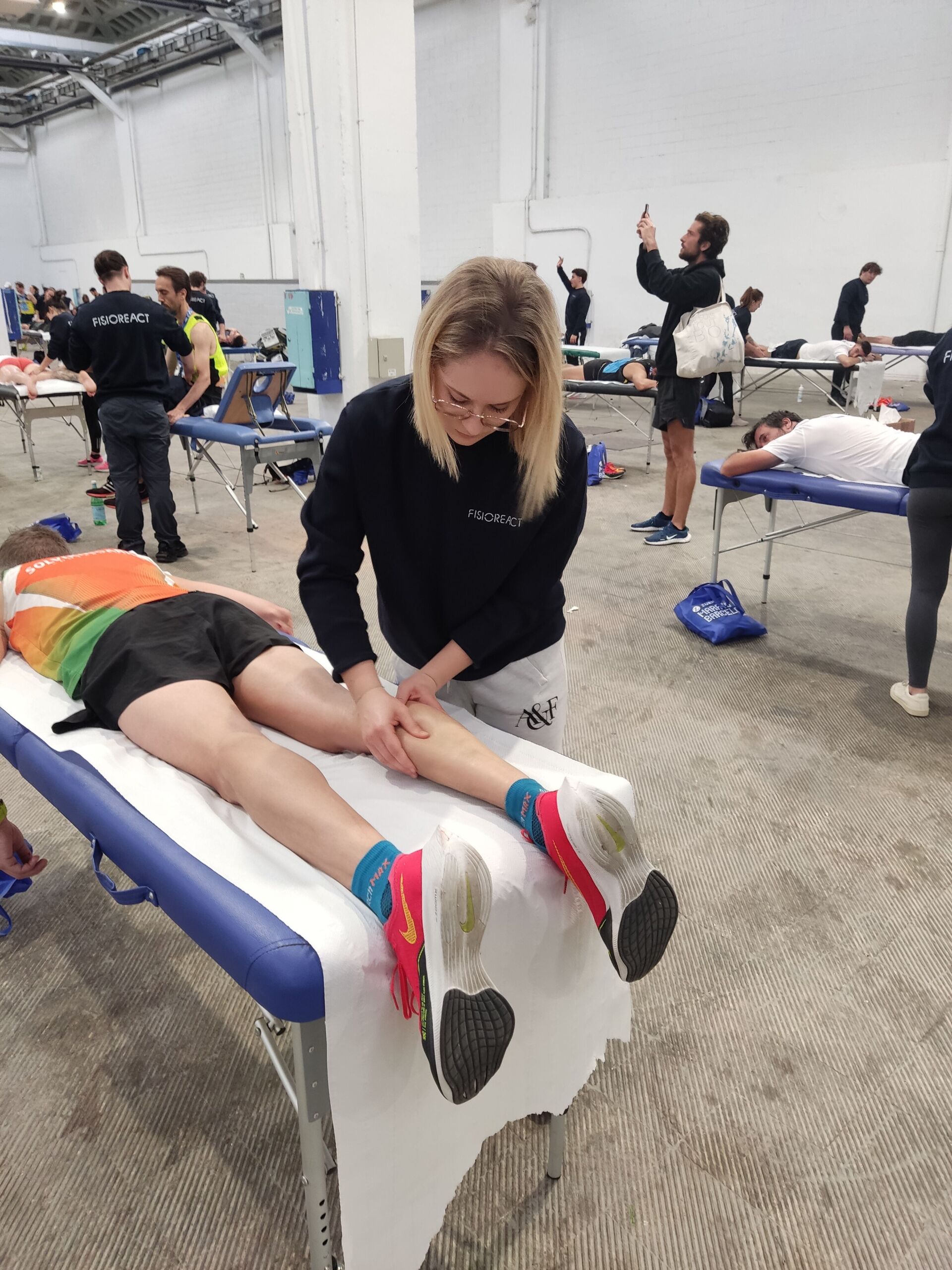 The 44th edition of the Barcelona Marathon was held this Sunday, a major event with more than 15,000 participants who ran 42.195 kilometres through the streets of the city. The Escola Universitària de la Salut i l’Esport has collaborated with a large contingent of students of the Degree in Physiotherapy of the Bellvitge Campus, under the tutelage of the physiotherapist of EUSES Alumni Alejandro Revilla. The Physiotherapy Barcelona students who at the end of the race and in a large area equipped with physiotherapy services have contributed to unload legs and accelerate muscle recovery of athletes based on massage and stretching have been: Thelma Malavelle, Millian Chevrier, Elna André, Lama El Kilani Alawi, Anna Campderrós, Benoît Jouannic, Alice Darlow, Maeva Flavie Agniel, Paula Muñoz, Maxime Stanislas Marry, Thomas David Laurent, Amandine Veine, Abdel-Hamid Chahine, Vicenta Marín, Theo Languet, Elora Chateau, Benjamin Soler, Marie Anne Durot, Thomas Fabrice Bretté, Manuel Louis Barrantes, Chloé Bastergue, Léo Robert, Gaëlle Ferbal, Judith Pérez i Lucas Synowski.